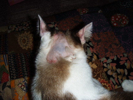 実家の猫の首の下辺りが画像のように腫れています 毛が抜けてピンクの皮膚が露 Yahoo 知恵袋