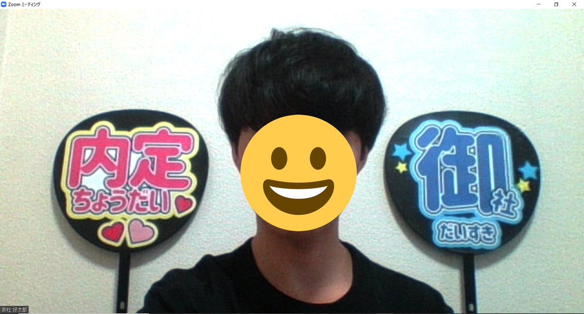 Sora F オンライン面接 さりげなく背景でアピールしたいなと思ってファンサうちわ作ったけど圧がすごいな